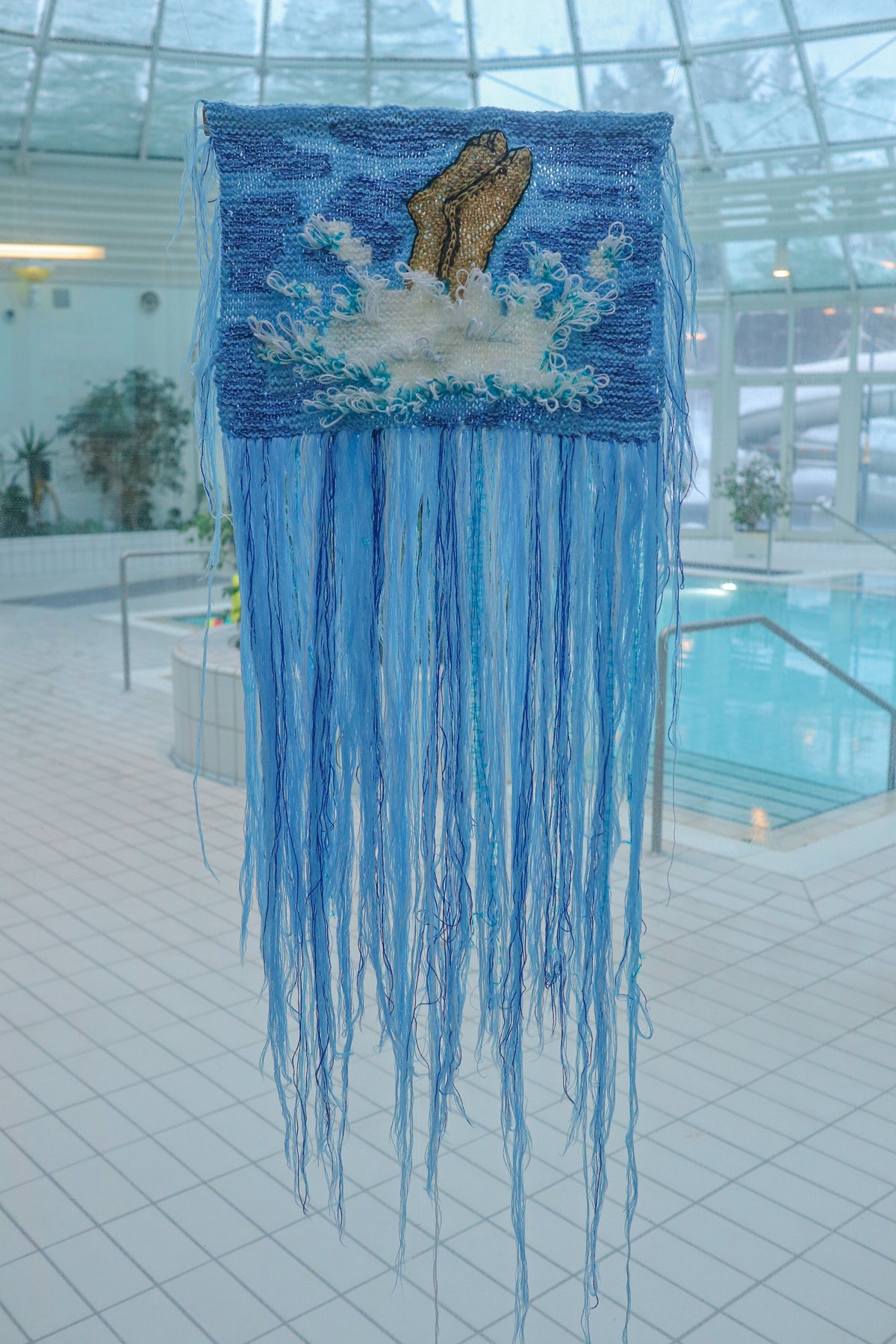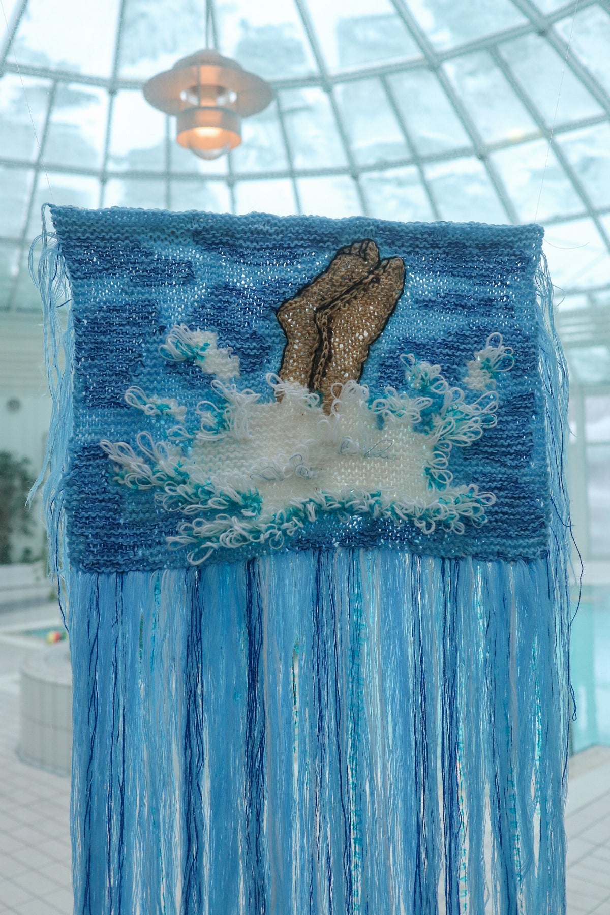 Knit piece “Dýfa” (e. Dive) made as part of Reykjavík’s Winter Lights Festival 2024.