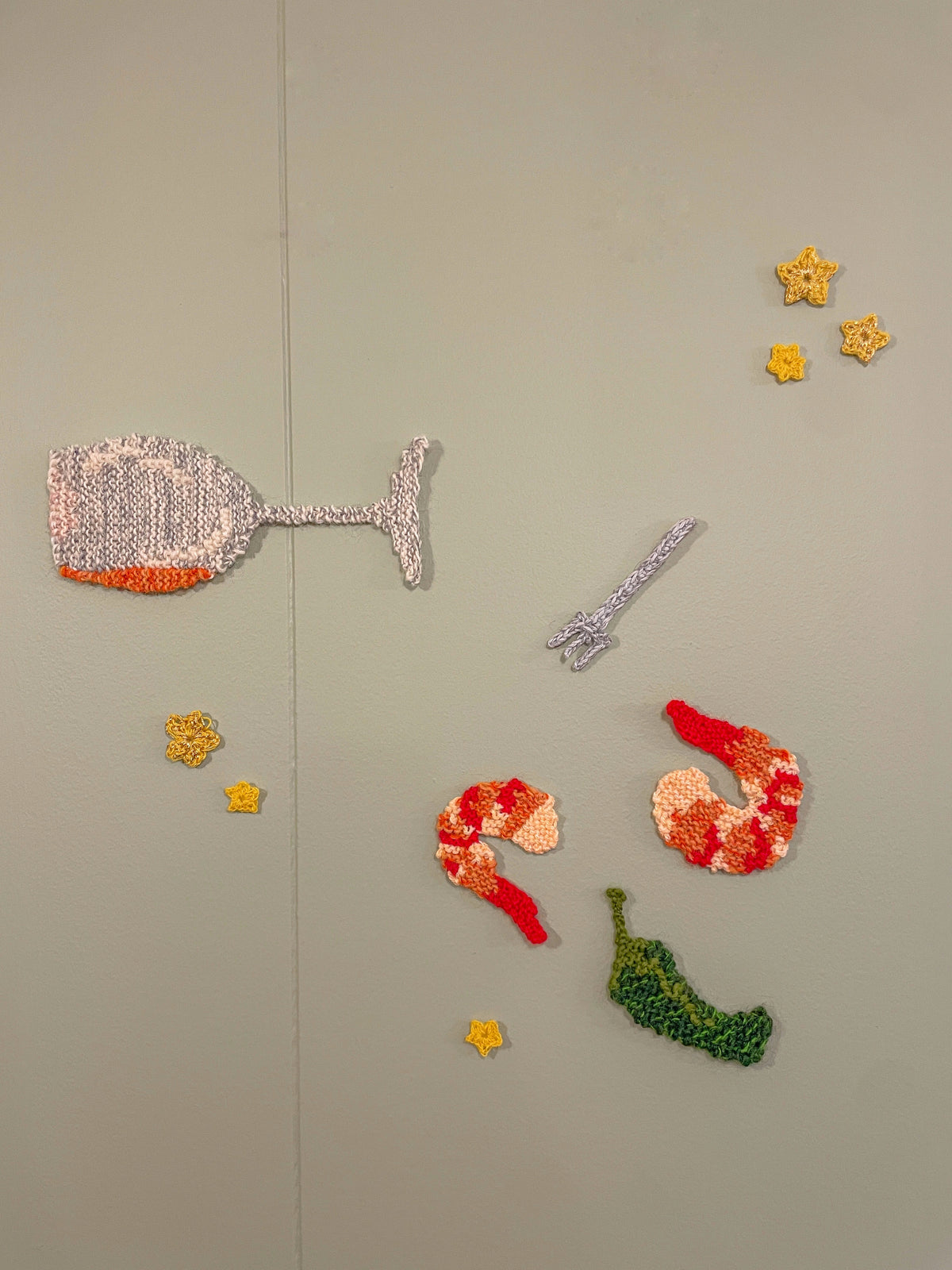 Off menu is a project I started in 2023, off-venue of Reykjavík's Design March. It is made in collaboration with my local wine bar Vínstúkan Tíu Sopar, where I knit my favorite things off their menu. The project is still going on to this day, and is open for commissions.