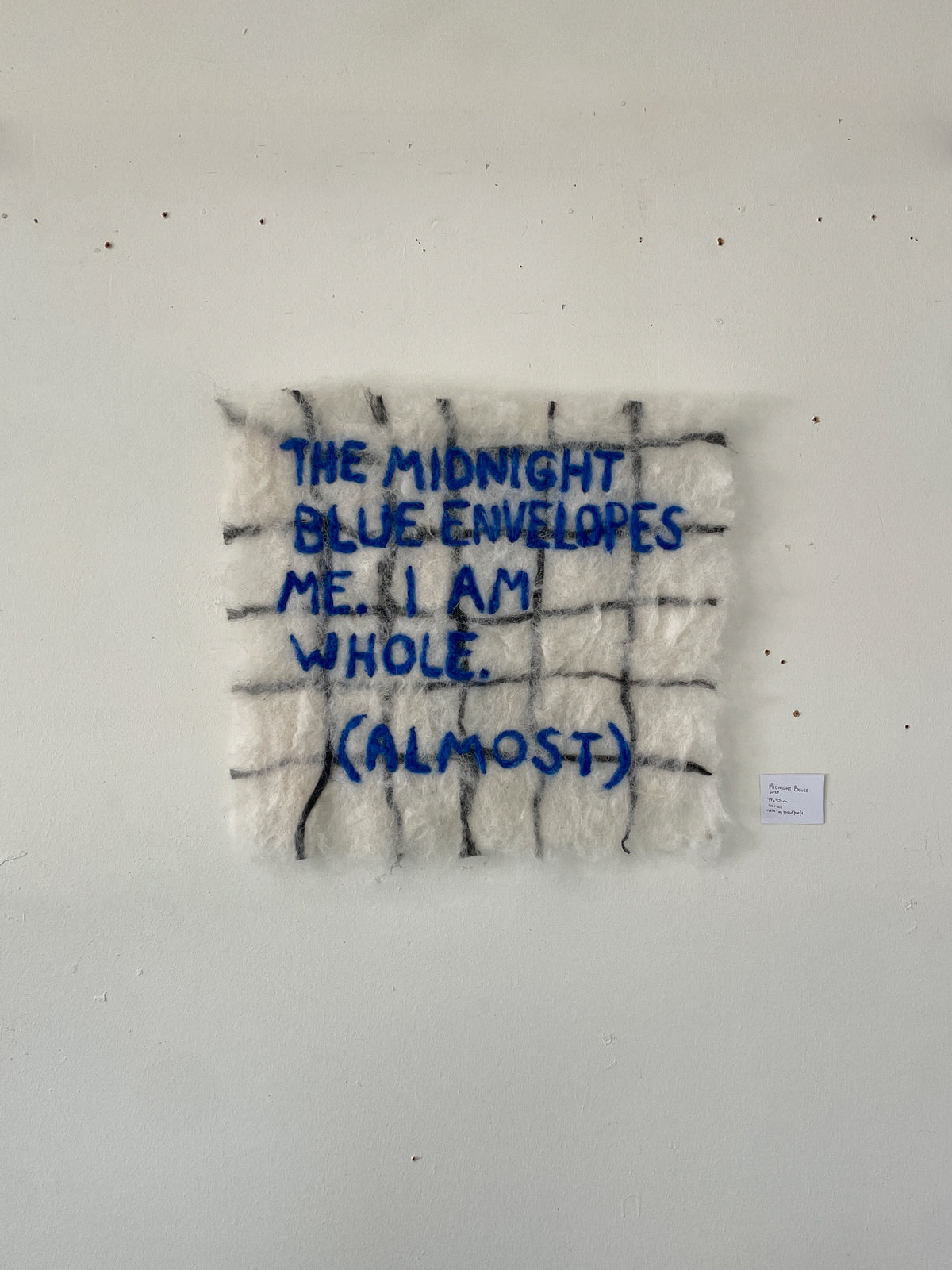 The title of the exhibition, "Open", refers on one hand to a book spread - the artwork was based off my diary entries – and on the other hand to the act of opening up, of sharing what